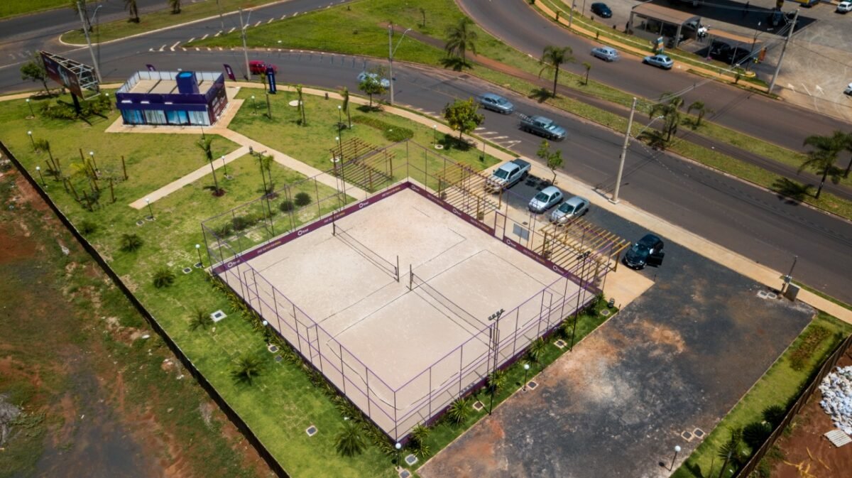 Empresa construiu praças com equipamentos para exercícios físicos ao ar livre, mesa para jogos, área verde e quadras de beach tennis