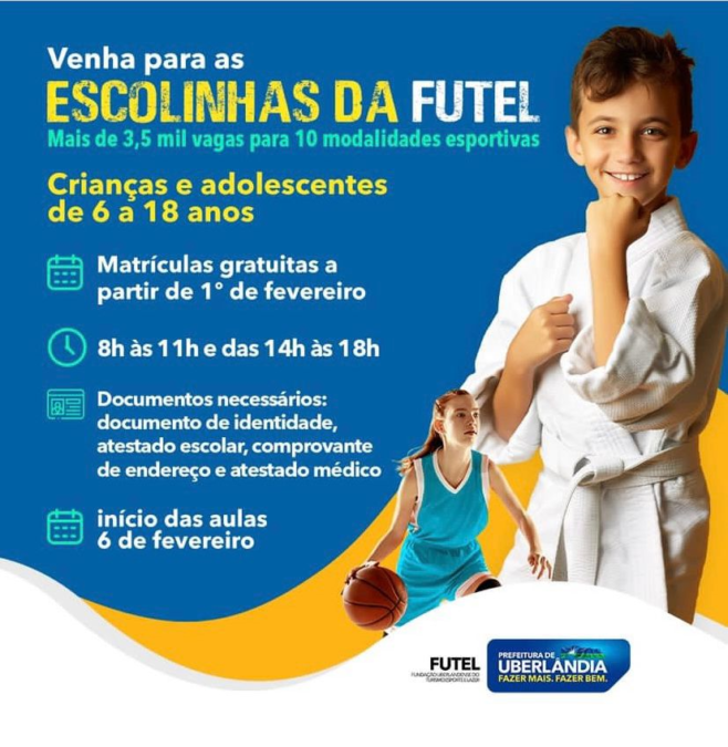 A Futel vai abrir, a partir desta quarta-feira (1/2), mais de 3 mil vagas gratuitas para iniciação esportiva. O atendimento para inscrição será exclusivamente feito de forma presencial das 8h às 11h e das 14h às 18h no local onde a modalidade é oferecida.