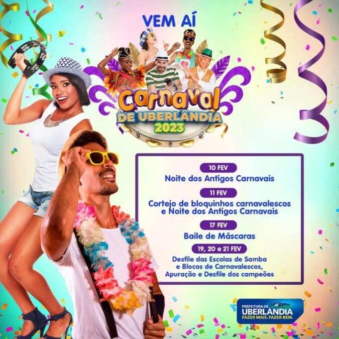 A noite desta sexta-feira (10) promete ser especial para os foliões de Uberlândia. Como parte da programação oficial do Carnaval 2023, a Secretaria Municipal de Cultura e Turismo prepara a tradicional “Noite dos Antigos Carnavais”. A festa começa às 19h na Praça Clarimundo Carneiro, com animação da banda Arte Fantástica. O evento também marca a entrega da chave da cidade ao Rei Momo.