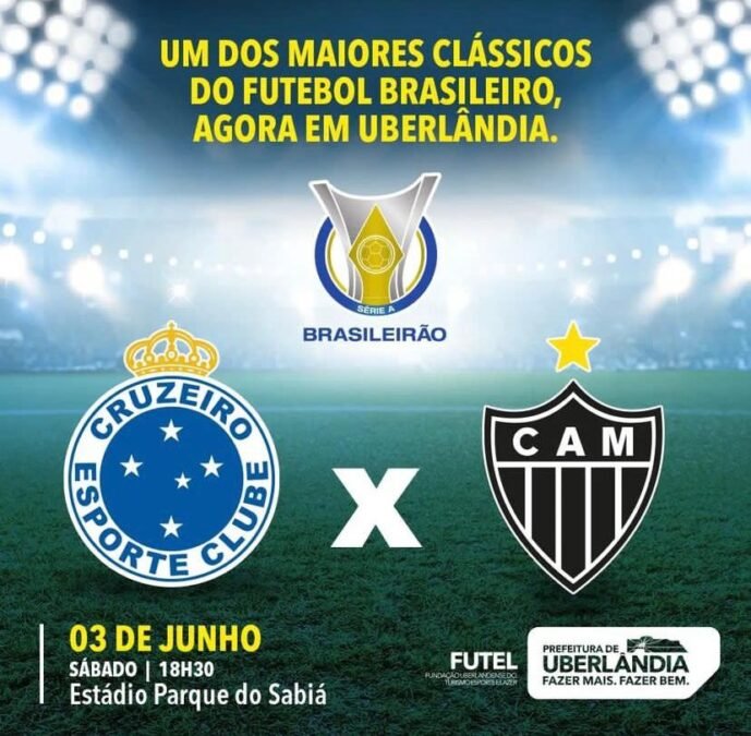 O clássico entre Cruzeiro e Atlético-MG, válido pela 9ª rodada da serie A do Brasileiro será disputado no Estádio Parque do Sabiá, em Uberlândia no dia 3 de junho. O Cruzeiro optou por levar o jogo para o interior do estado, uma vez que o Mineirão receberá um evento de música eletrônica no mesmo dia do jogo.