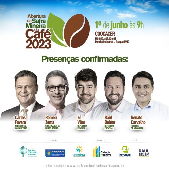 “A abertura da safra mineira de café de 2023 será um grande marco para nossa Região. Teremos a honra de receber diversas autoridades que virão especialmente para esse evento, tornando-o uma vitrine para exibirmos a força e a união do Cerrado Mineiro. Convidamos a todos os produtores para esse momento histórico”, ressalta o presidente da Federação dos Cafeicultores do Cerrado, Gláucio de Castro.