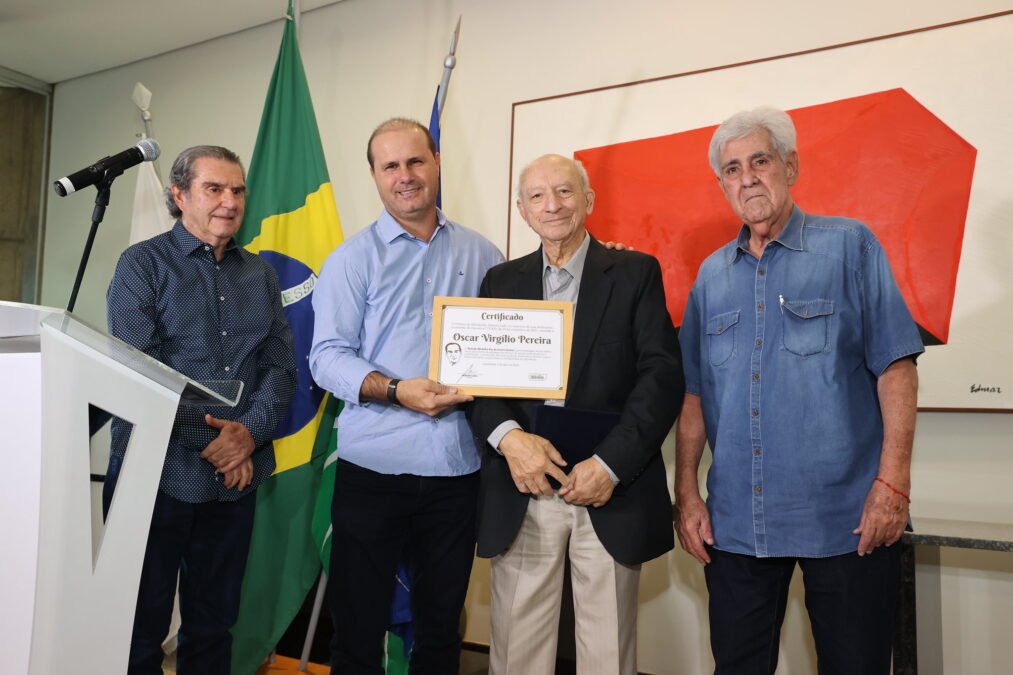 Dr. Oscar Virgílio Pereira tem 90 anos de idade e foi Procurador-Geral do Município nas gestões Odelmo Leão e Virgílio Galassi, além de ocupar os cargos de assessor jurídico e secretário de administração na gestão do ex-prefeito Renato Freitas e Procurador Jurídico da Universidade Federal de Uberlândia. Ele recebeu a distinção que leva o nome do empresário uberlandense Ary de Castro Santos, fundador do Grupo Paranaíba de Comunicação.