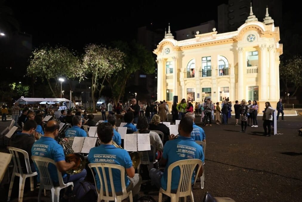 Ao lado do presidente da Câmara, vereador Zezinho Mendonça e demais vereadores da base governista e dos deputados Ana Paula Junqueira Leão (federal) e Cristiano Caporezzo (estadual), o prefeito de Uberlândia, Odelmo Leão, inaugurou, na noite da sexta-feira passada (23/06), uma nova iluminação de destaque em 18 espaços públicos. A cerimônia aconteceu na Praça Clarimundo Carneiro (antiga Praça da Prefeitura), localizada no Fundinho, e marcou o acionamento das novas luzes que receberam a modernização a partir da Parceria Público-Privada (PPP) da Iluminação, firmada pela Prefeitura de Uberlândia com a concessionária Engie. O evento ainda contou com apresentação da Banda Municipal.
