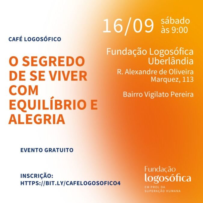 O evento é gratuito e será na sede da Fundação Logosófica de Uberlândia, dia 16/09/2023 às 9 horas. As vagas são limitadas.