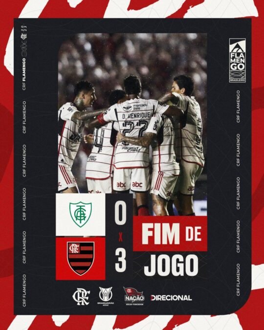 O Flamengo cumpriu sua missão ao derrotar o América-MG, que ocupa a última posição na tabela, em uma partida disputada no Parque do Sabiá, em Uberlândia. O confronto resultou em uma vitória convincente de 3 a 0 para o time carioca, com gols de Cebolinha, Pedro e Everton Ribeiro. Com este triunfo, o Flamengo ascendeu à vice-liderança do campeonato, contudo, teve efêmero gosto pela liderança, pois o empate do Palmeiras com o Fortaleza retirou a chance deles assumirem o topo, mantendo, assim, a acirrada briga pelo título.