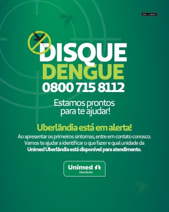 Dados da Secretaria de Estado de Saúde revelam que Minas Gerais registrou (até 15/2) 181.645 casos prováveis de Dengue. No município de Uberlândia há registro de 3.081 casos prováveis no mesmo período. Diante de um possível surto da doença na cidade, a Unimed Uberlândia, como responsável pela prestação de serviços de saúde à grande parte da população, lança o serviço Disque Dengue – Central de Atendimento telefônico que fará a gestão do fluxo de atendimentos conforme a capacidade da rede prestadora. O número para ligações gratuitas é 0800 715 8112.