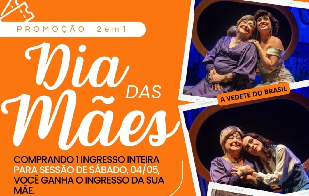 Antecipe o Dia das Mães e leve-a ou a presenteie com um momento inesquecível: um musical alegre, divertido e emocionante com uma atriz que sempre fez parte da vida dela, Suely Franco, no espetáculo “A Vedete do Brasil – Um Musical Brasileiro”, ao lado de Flávia Monteiro, Bela Quadros e músicos. Antes dessa deliciosa apresentação, sua mãe ainda vai apreciar um sarau cênico-musical com o ator/cantor lírico Flávio Arciole, acompanhado da pianista Maria Célia Vieira.