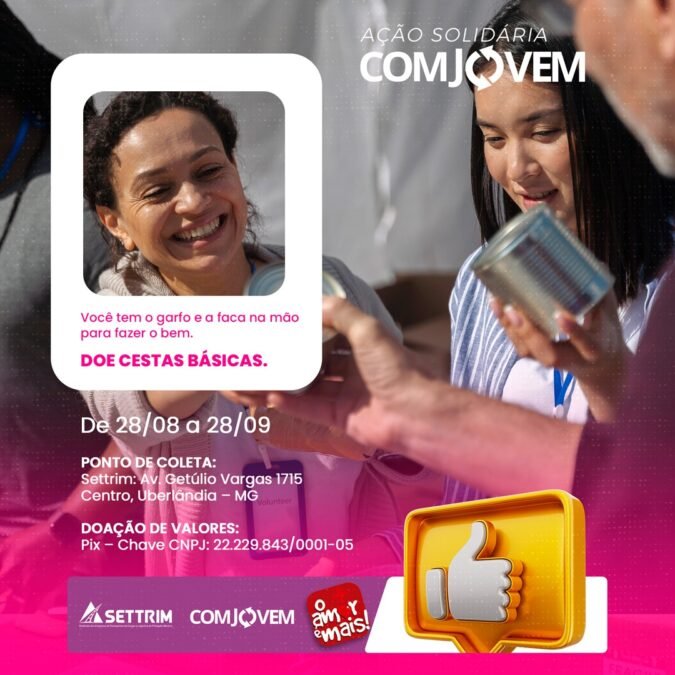 Em um gesto de solidariedade, o núcleo da Comjovem do Triângulo Mineiro lançou uma campanha de arrecadação de cestas básicas que promete fazer a diferença na vida de famílias em situação de vulnerabilidade em Uberlândia. O Settrim (Sindicato das Empresas de Transporte de Carga do Triângulo Mineiro) receberá as doações até o dia 28 de […]
