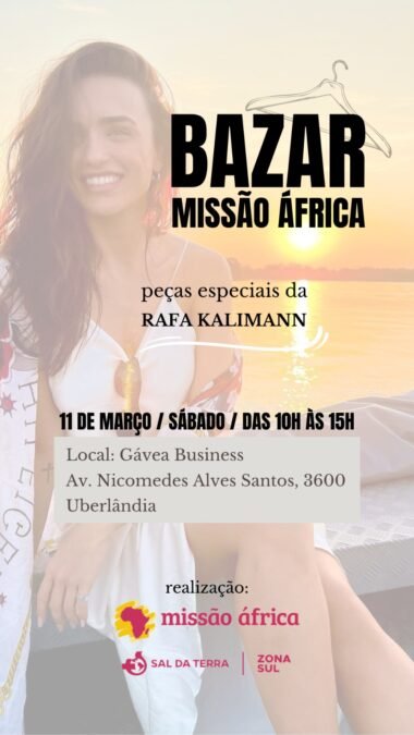 A Missão África convida toda comunidade uberlandense para o Bazar da Missão África 2023, um evento beneficente que será realizado no sábado, 11 de março, das 10h às 15h, no Gávea Business, em Uberlândia. Durante o evento, os participantes terão a oportunidade de adquirir, dentre outras mercadorias, acessórios e itens de vestuário de grandes marcas, […]