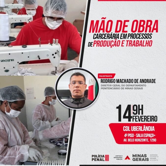 O Departamento Penitenciário de Minas Gerais (Depen-MG), por meio da 9ª Diretoria Regional de Polícia Penal convida para a palestra: “Mão de Obra Carcerária em Processos de Produção e Trabalho”. Na oportunidade, será apresentada a política de trabalho de custodiados no sistema prisional do estado e seus benefícios, assim como os impactos na ressocialização dos […]