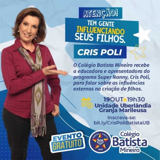 O Colégio Batista Unidade Uberlândia receberá a educadora e apresentadora do programa Super Nanny, Cris Poli, para um bate papo a respeito das influências externas na educação das crianças e adolescentes. Todas as famílias da unidade Uberlândia estão convidadas. O evento é gratuito e as vagas são limitadas mediante inscrição. https://bit.ly/CrisPoliBatistaUB Data: 19/10/2022 às […]