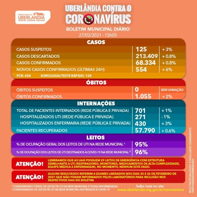 O sinal é de alerta para a população de Uberlândia que vem demonstrando afrouxamento no isolamento social mesmo com ainda com 100% de leitos ocupados nos hospitais públicos e privados na região devido à segunda onda da pandemia de Covid-19. Segundo a média registrada na última segunda-feira, 12, Uberlândia apontou o índice de isolamento de […]
